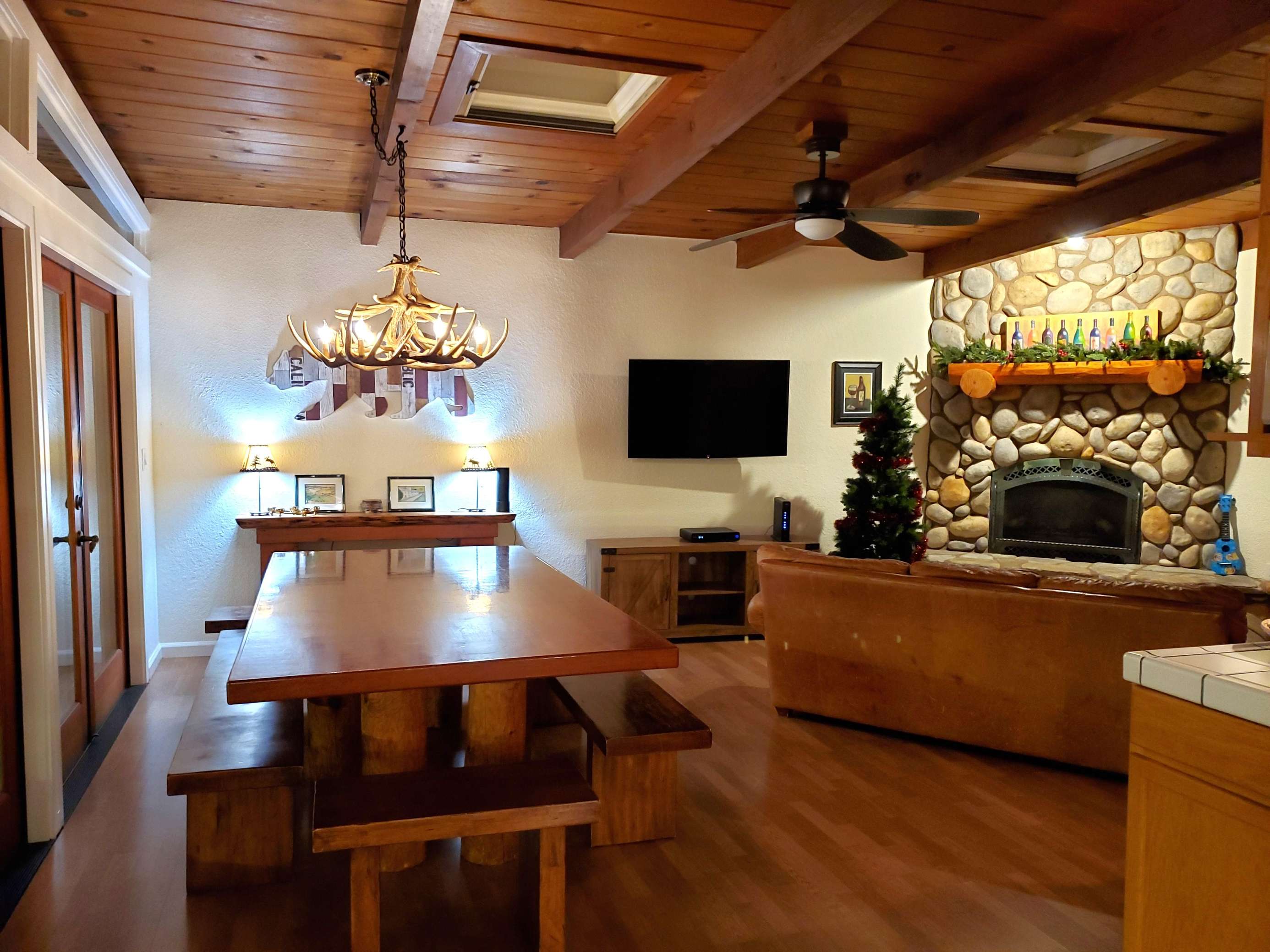 Riverfront getaway on Healdsburg's Fitch Mountain. This freshly renovated, 4 bedroom, 2 bath vacation home of rustic elegance, is tucked along the banks of the Russian River, with private beach access, a hot tub, multi-level decks, and many other features to make your stay memorable!