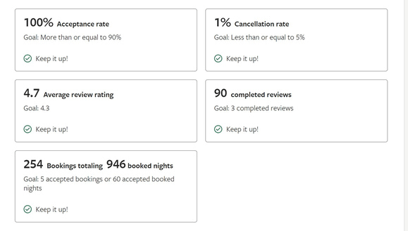 We assess Premier Host status every 3 months, reviewing your combined performance from the last 365 days. However, if you meet the new criteria sooner, you’ll automatically gain acceptance across all your listings.