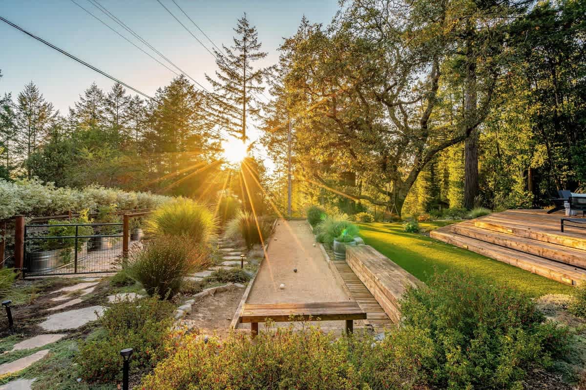 -Fire pit, hammocks, bocce court, pizza oven/grill, and seasonal vegetable garden