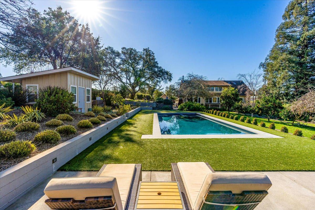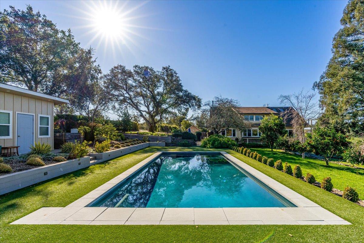 A highlight of this property is the newly installed in-ground pool, complete with a hot tub for ultimate relaxation. The garden area provides a serene space to unwind, while the Weber gas grill allows you to indulge in some outdoor cooking. Additionally, the pool bathroom with a shower and wine cellar add to the convenience and luxury of this one-of-a-kind wine country living experience.
