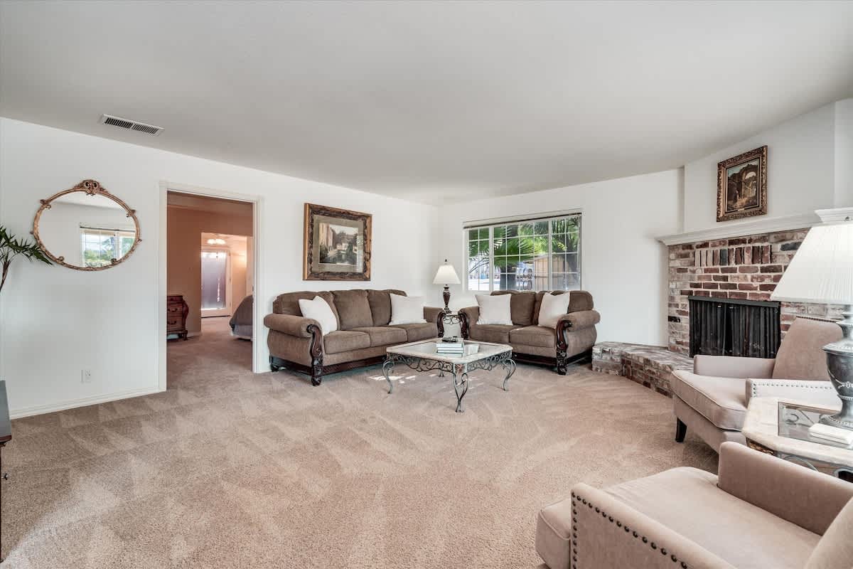 • Spacious living room with integrated sound system
