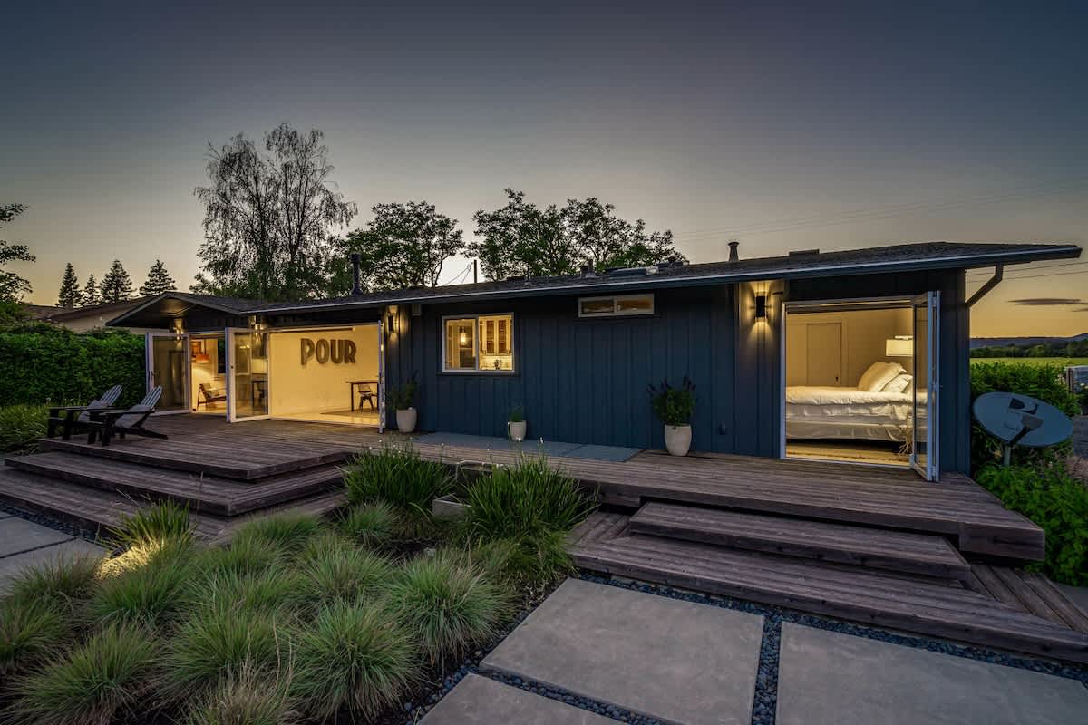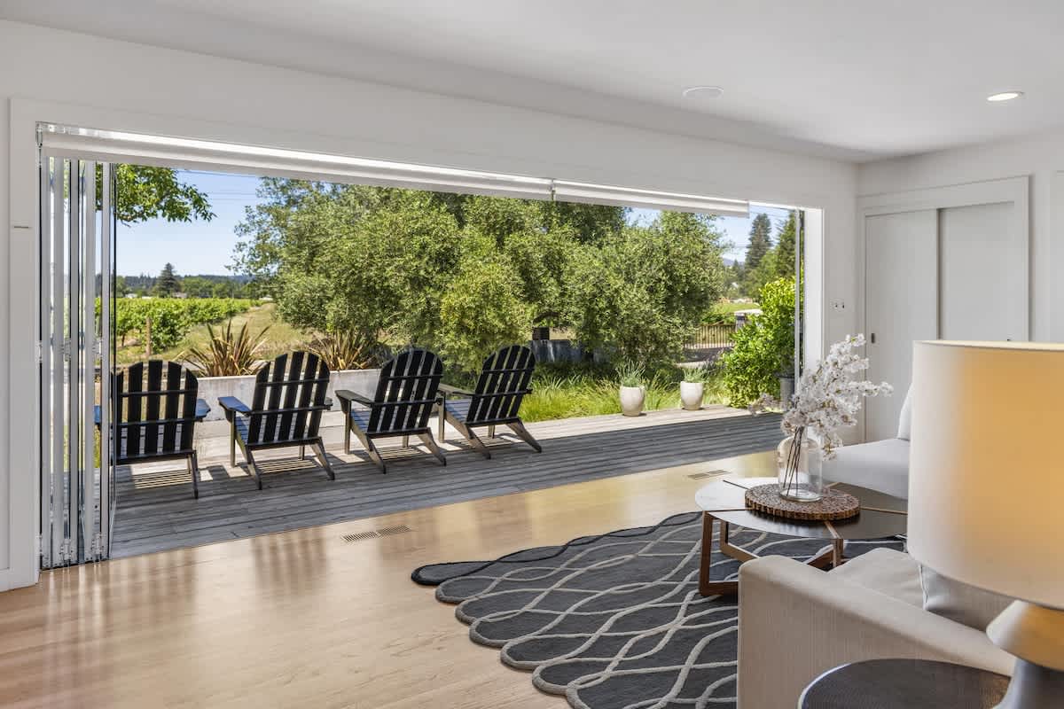 Escape to Private Vineyard Haven, a luxurious 2BR/2BA Sonoma home where modern comfort meets vineyard charm. Spanning 1,439 square feet, the home features a gourmet chef’s kitchen and floor-to-ceiling folding glass doors that open completely, blending indoor living with stunning views of your private Sauvignon Blanc vineyard and California sunshine.