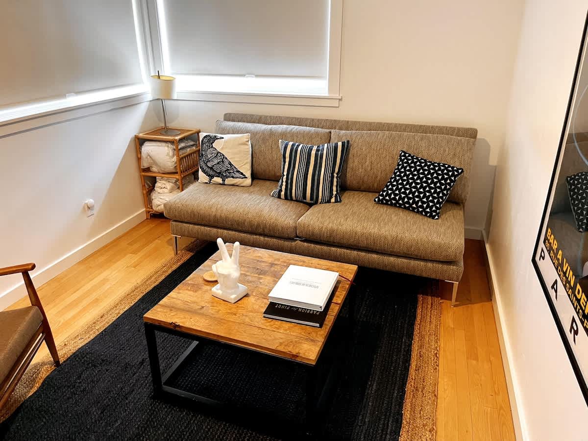 • Reading room with daybed and queen dual-zone airbed for quiet moments