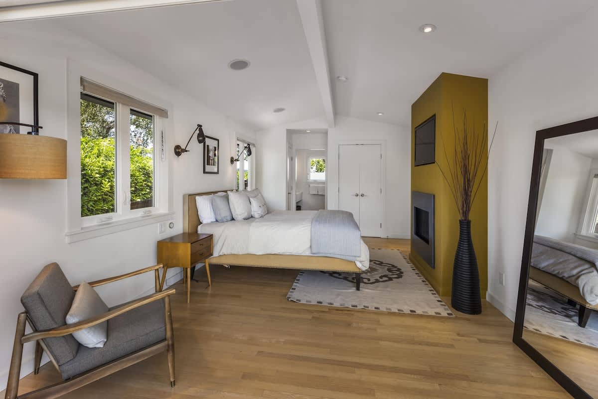 • Primary Suite: King bed, gas fireplace, high ceilings, en-suite bathroom with walk-in shower and double vanity