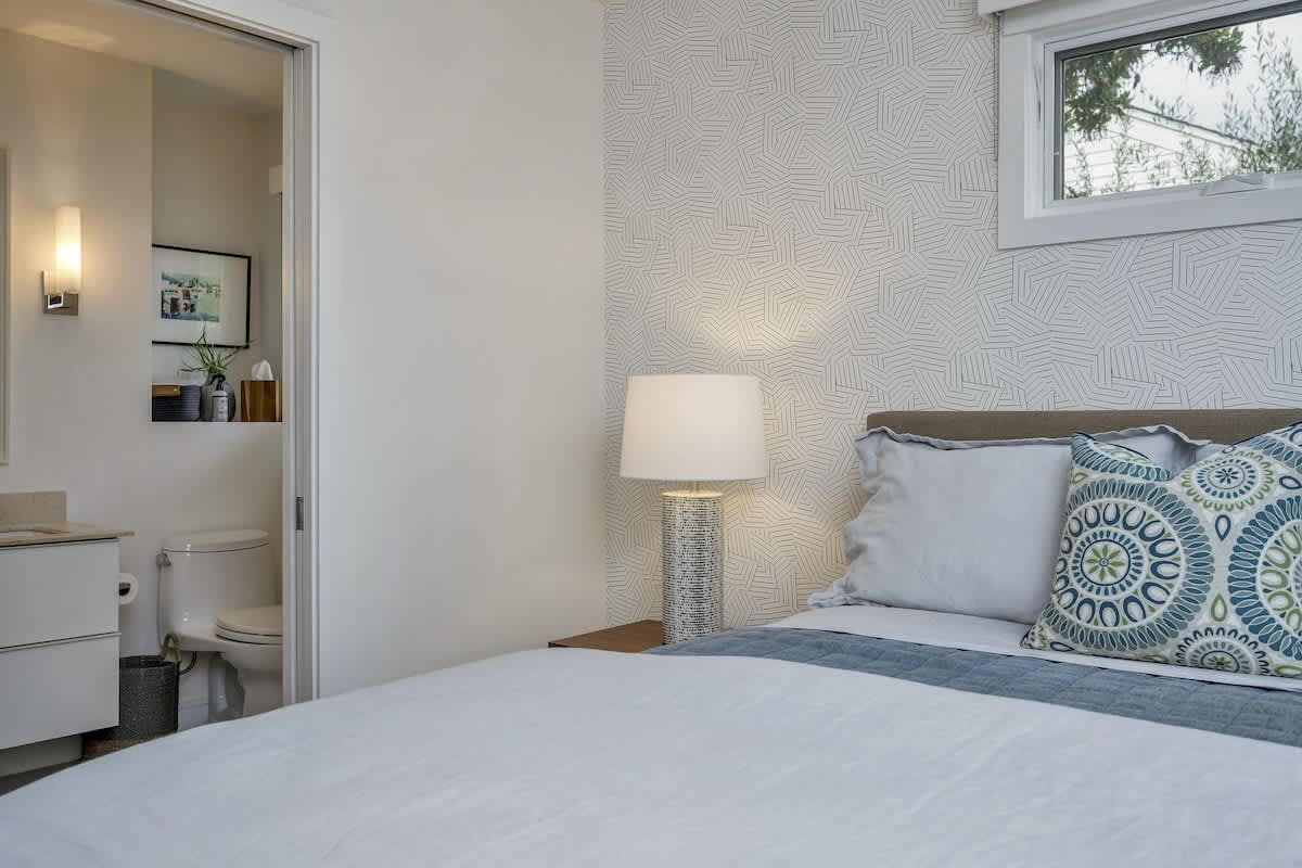 Primary Suite – Luxurious master bedroom with en suite bathroom and premium bedding