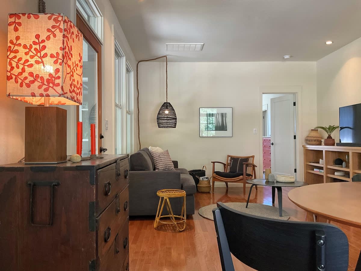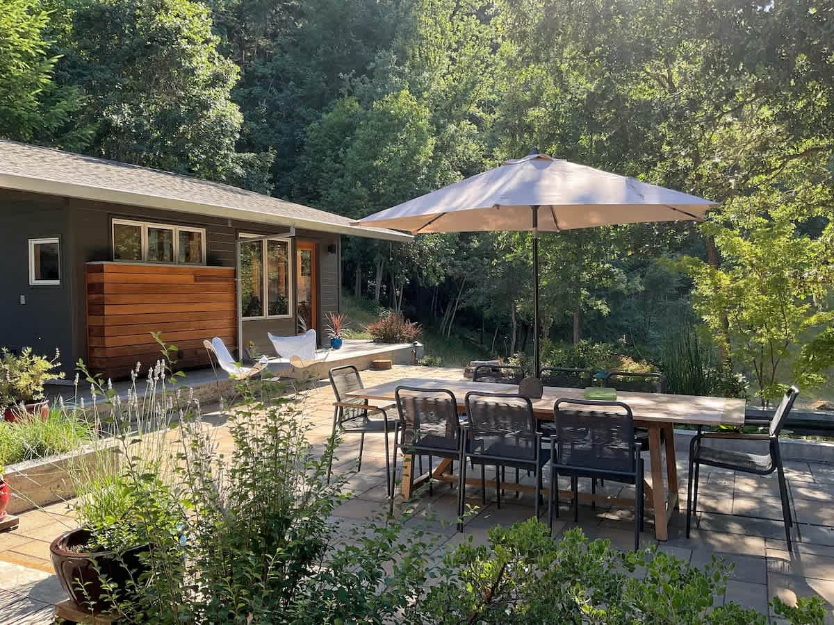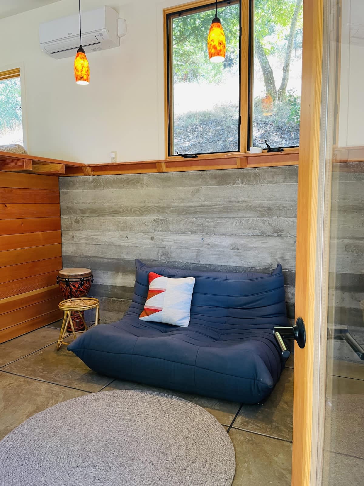 Nestled between towering redwoods and rolling vineyards, Puccioni Paradise offers an intimate Wine Country escape for couples or solo travelers seeking tranquility and romance. Just 15 minutes from Healdsburg Plaza's renowned restaurants and tasting rooms, this peaceful sanctuary combines modern comfort with natural beauty—perfect for romantic getaways, remote work retreats, or wine lovers seeking privacy.