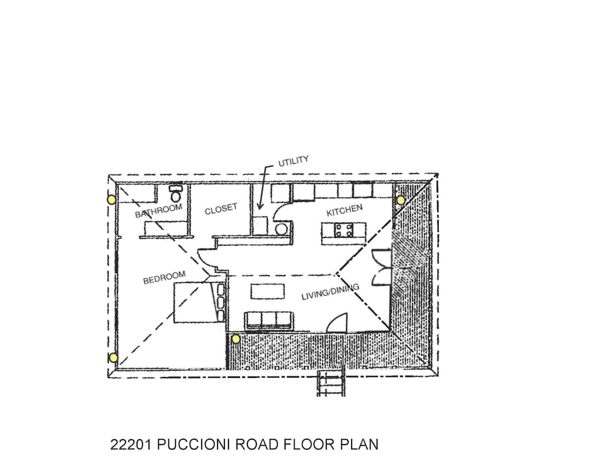 Remote location requires guests to dispose of trash/recycling at designated bins on Puccioni Rd & Mill Creek Rd