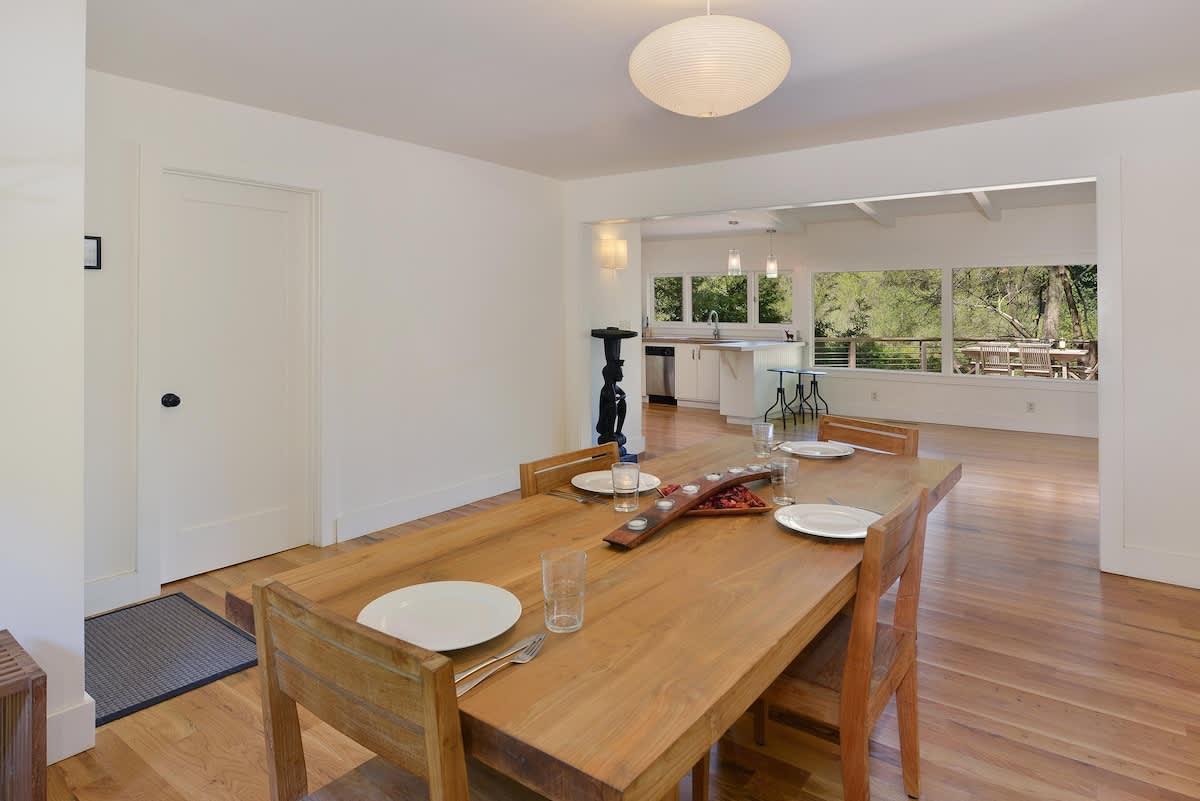 Escape to Redwood River House, a beautifully updated 2-bedroom, 1-bathroom riverfront cottage along the Russian River, just 1.5 miles from downtown Healdsburg. Thoughtfully designed for couples, small families, or friends, this inviting Wine Country retreat pairs peaceful river views and mountain scenery with modern comforts and easy access to town.