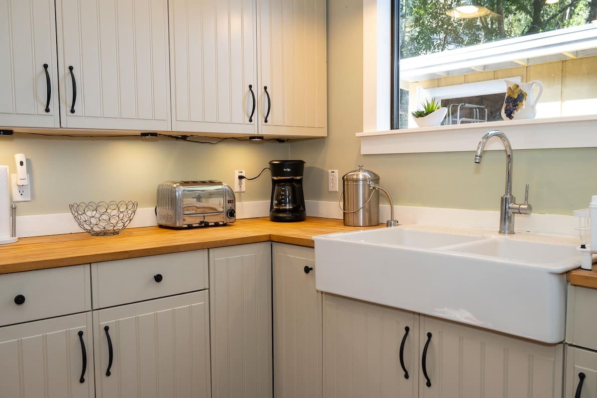 • Fully equipped kitchen: French press, drip coffee maker, bean grinder, tea kettle, dishwasher