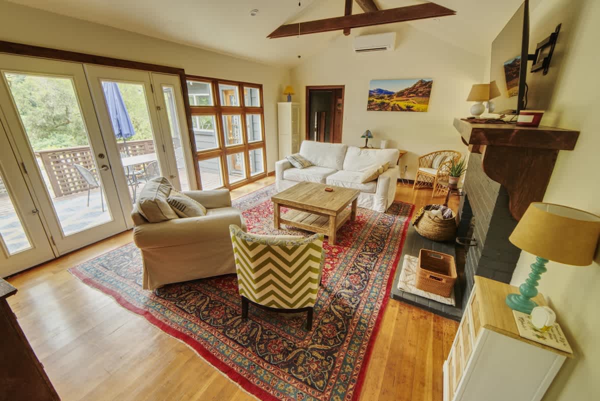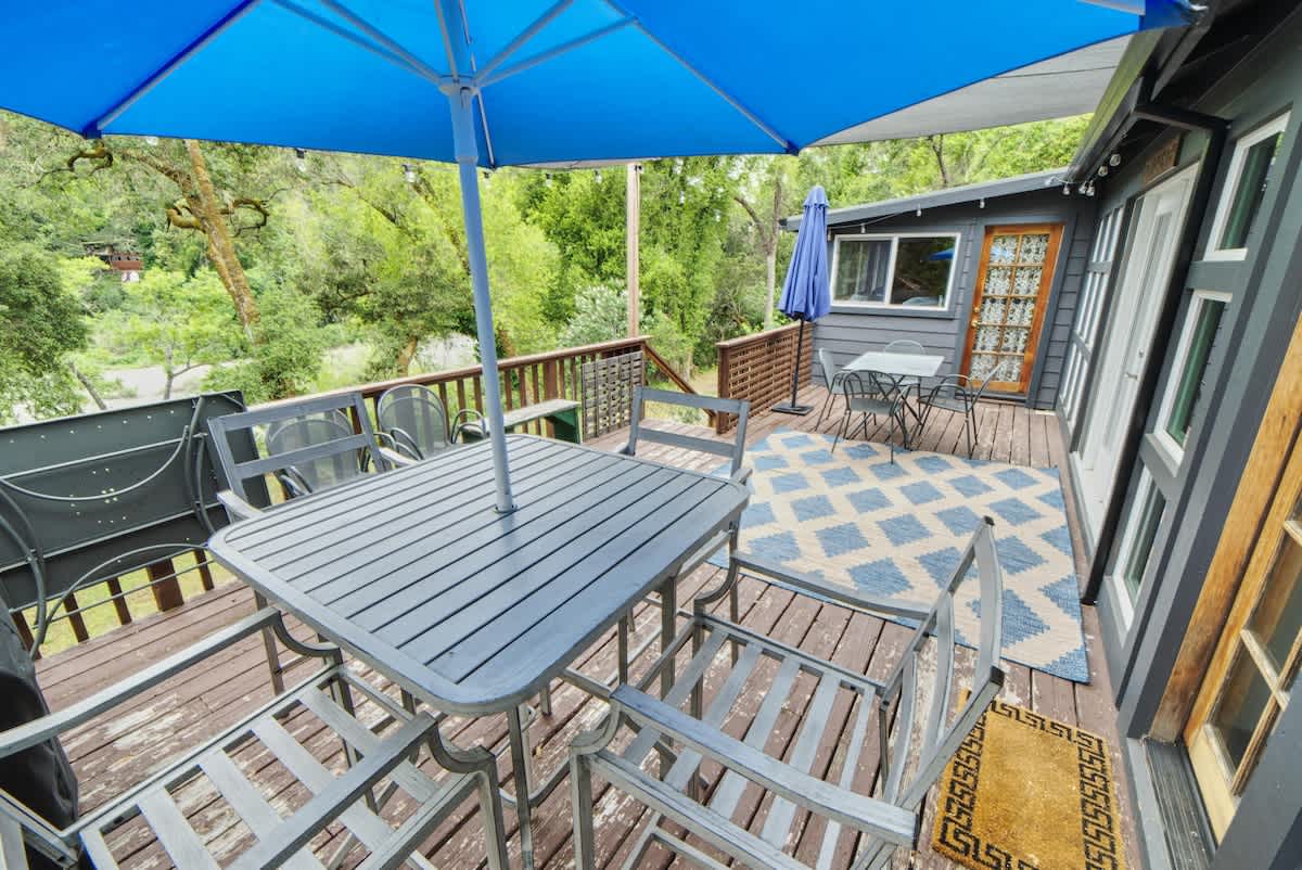 Slow down, unplug, and breathe in the beauty of riverfront living at Rivers Breeze, a charming 2-bedroom, 1-bath main house with a private 1-bedroom, 1-bath lower-level suite, nestled along a peaceful stretch of the Russian River, just minutes from downtown Healdsburg and nearby wedding venues. Perfect for couples, families, or friends, this retreat invites you to reconnect with nature, loved ones, and yourself.
