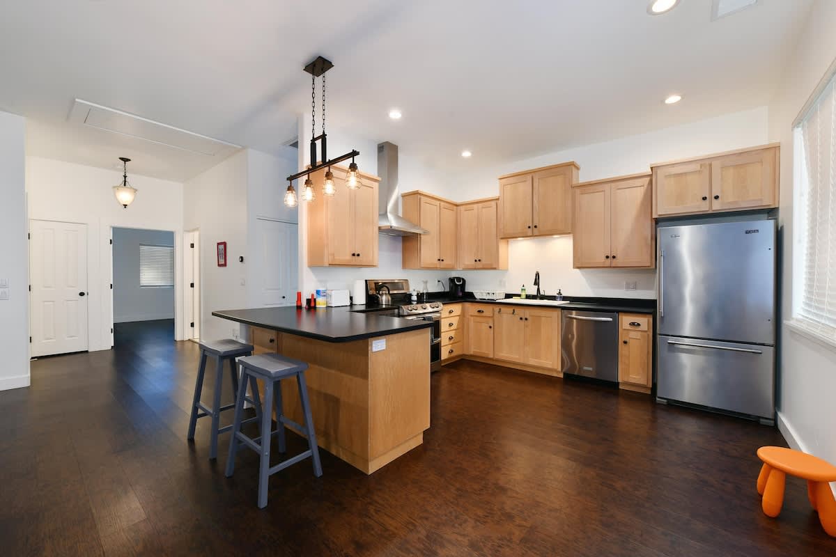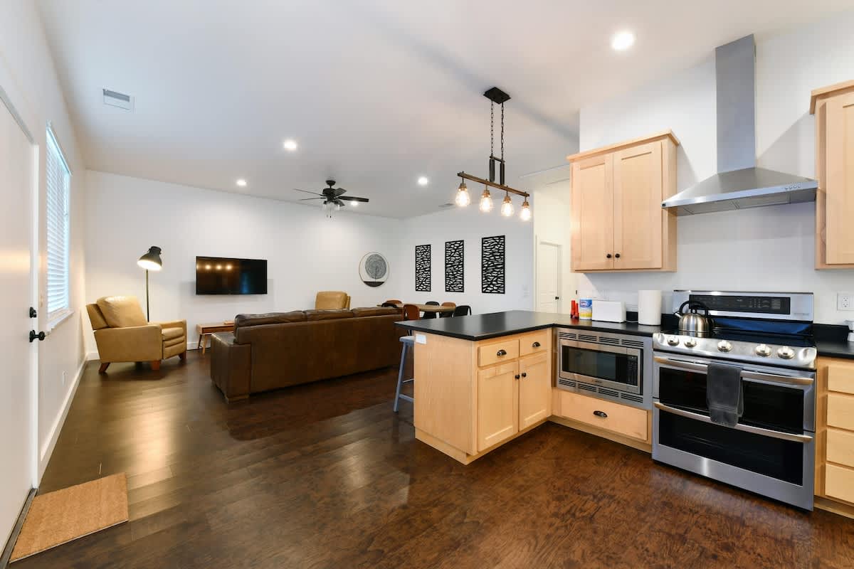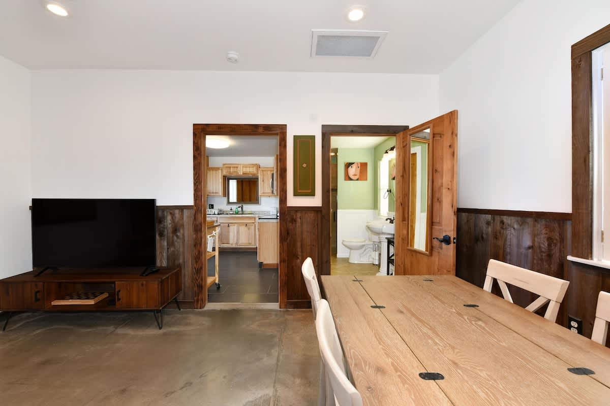 All units feature: luxury furnishings, central heat/air, smart TVs, Wi-Fi, fully equipped kitchens, coffee makers and washer/dryer. Main house has a Ninja blender/food processor combo and Wolf Range. Queen airbed available for guest use.