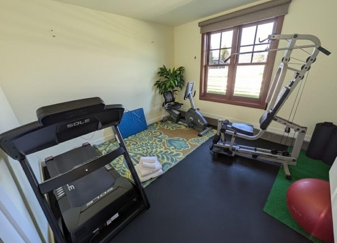 • Bocce court, basketball hoop, ping pong, pool table, small home gym