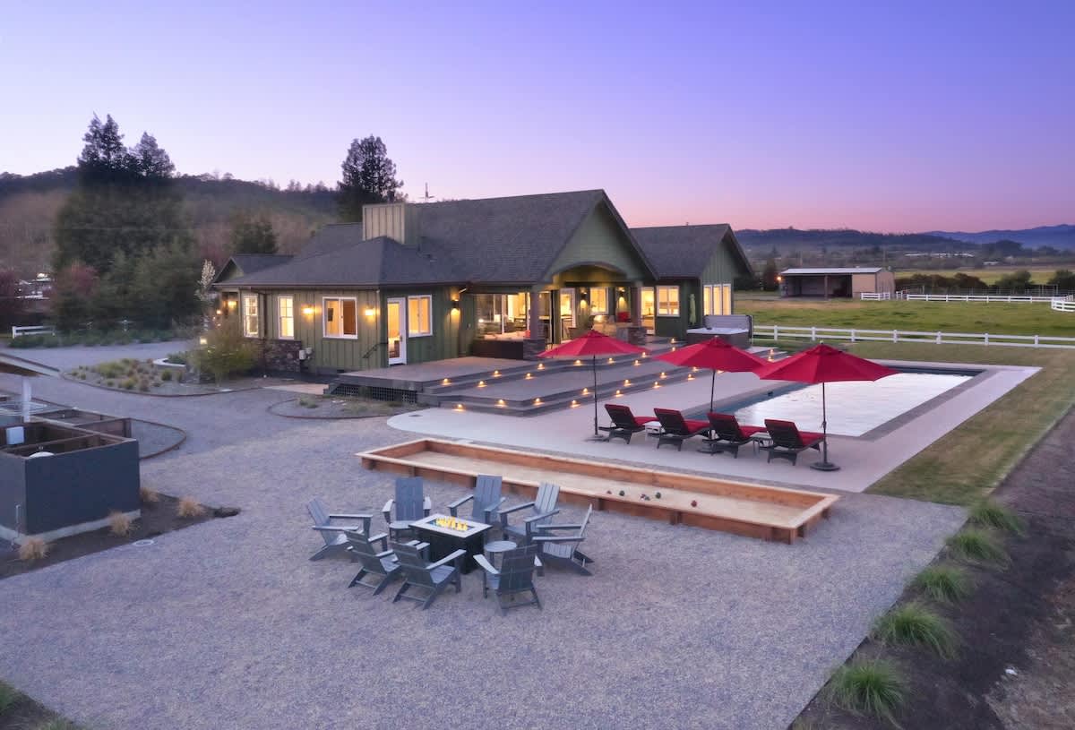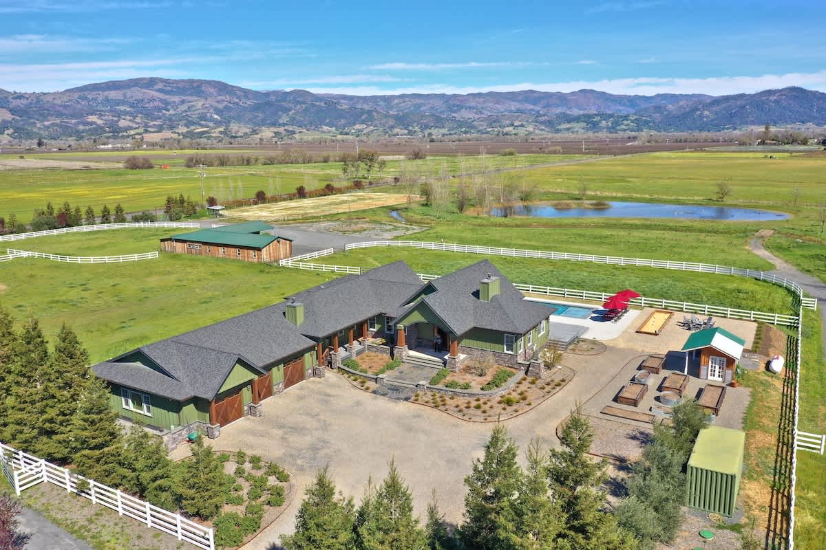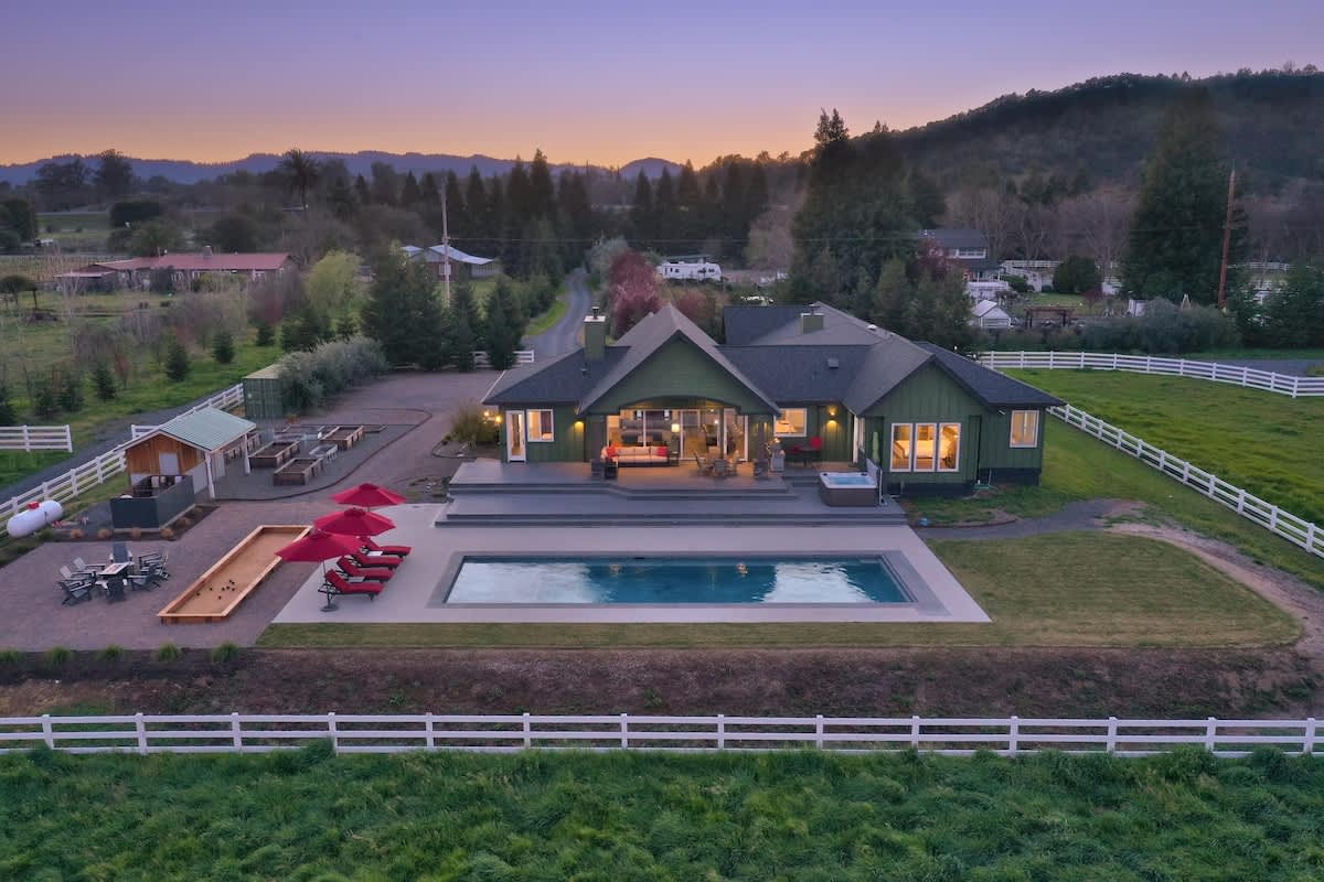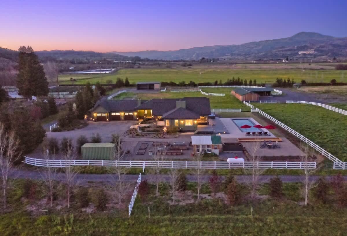 Escape to Sanctuary on Lytton, an extraordinary 11.67-acre estate in the heart of Alexander Valley, just 7 minutes from Healdsburg Plaza. This exclusive retreat offers ultimate privacy, breathtaking mountain and valley views, and a serene bird refuge, making it ideal for family reunions, friends’ getaways, corporate retreats, or creative workshops.