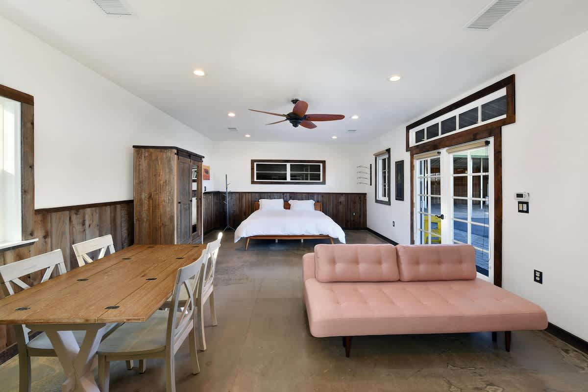 • Studio Bunkhouse: 600 sq ft, 1-2 bedrooms, 1 bath