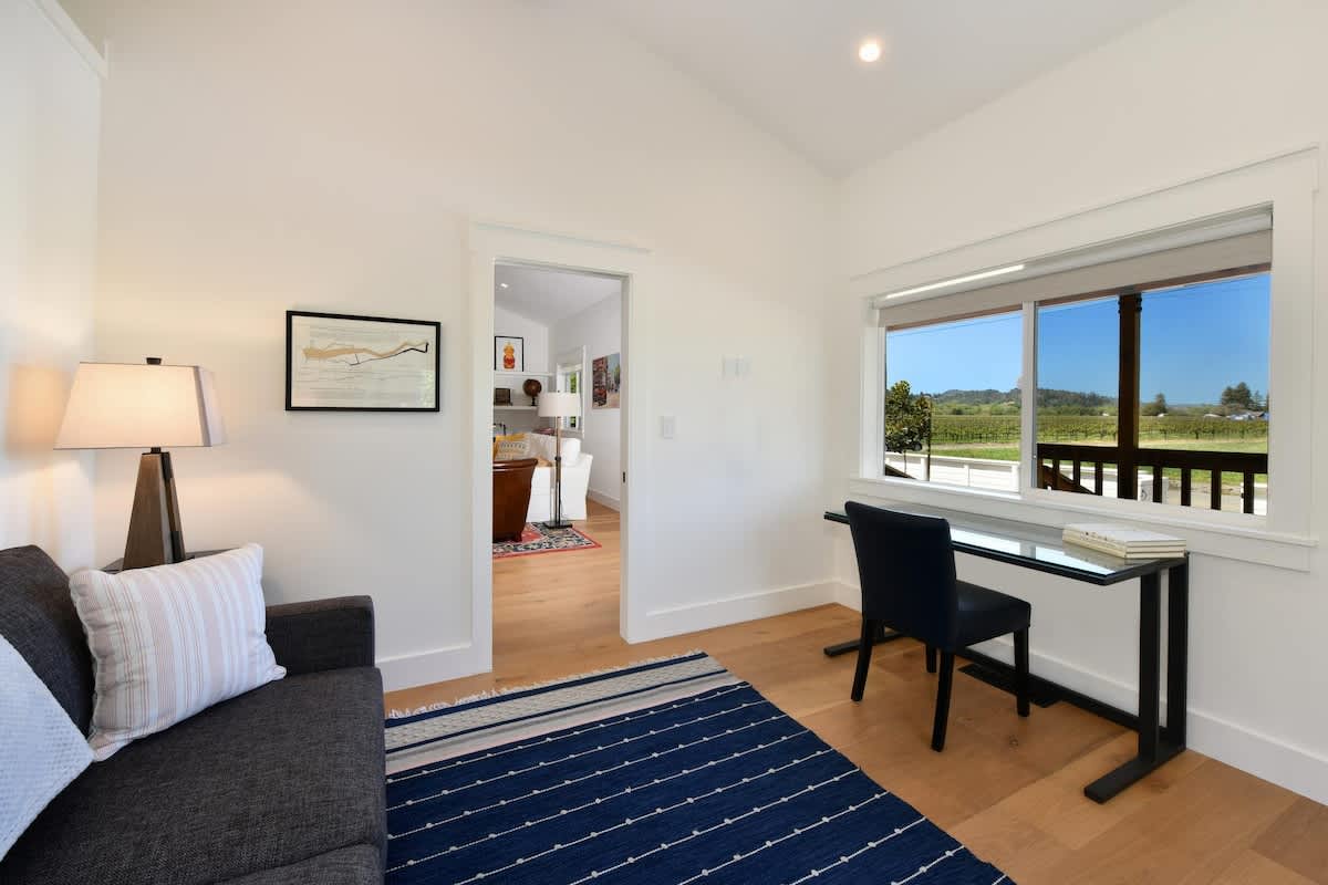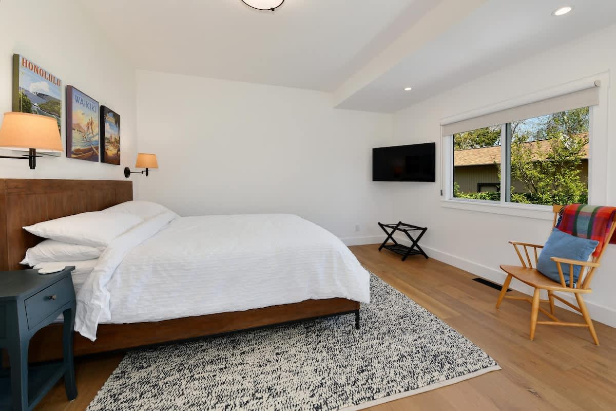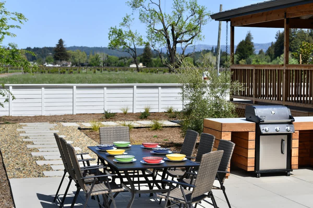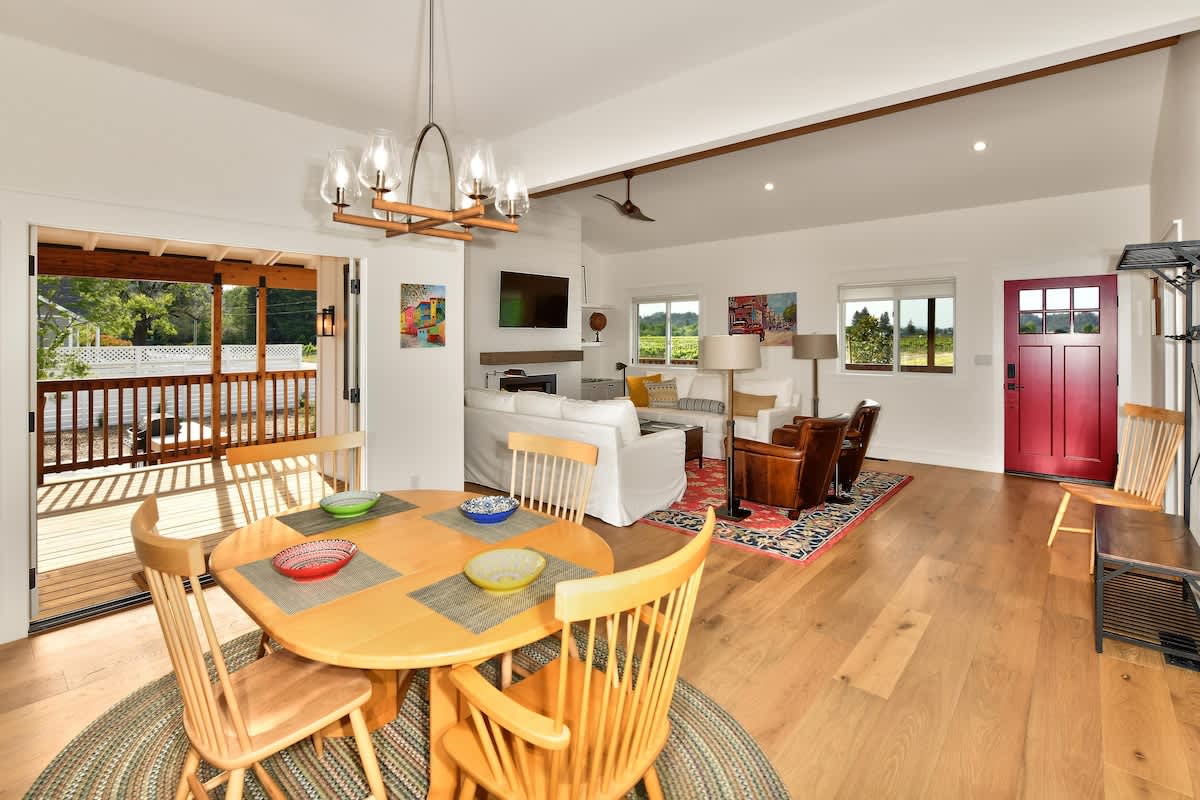 Where urban sophistication meets wine country charm, Vineyard Vue is a beautifully remodeled farmhouse just blocks from downtown Healdsburg. Blending character, comfort, and breathtaking vineyard views, it’s ideal for romantic getaways, family vacations, or friends’ retreats. Free on-site parking and a single-level layout ensure accessibility and convenience.