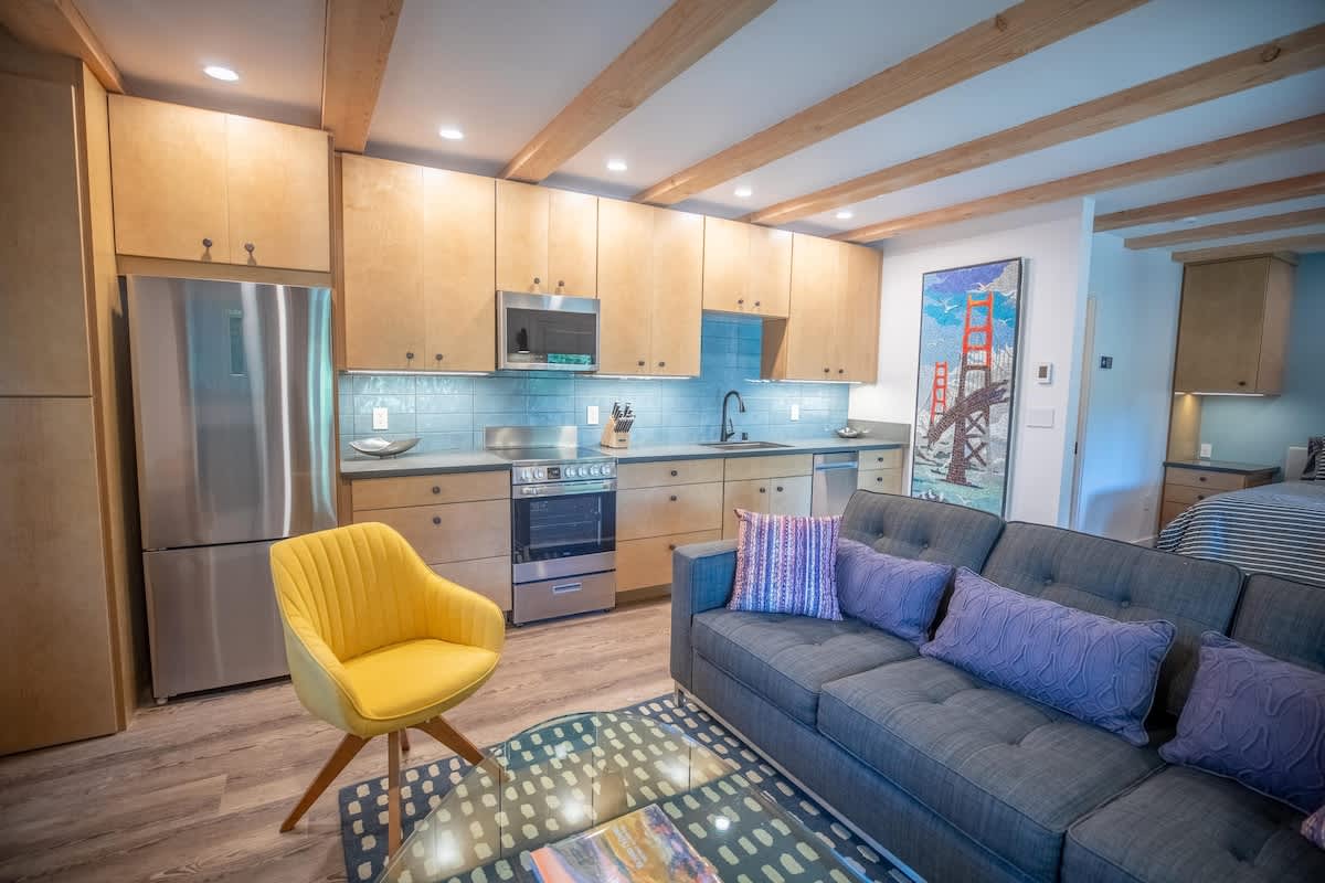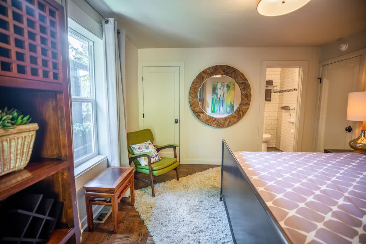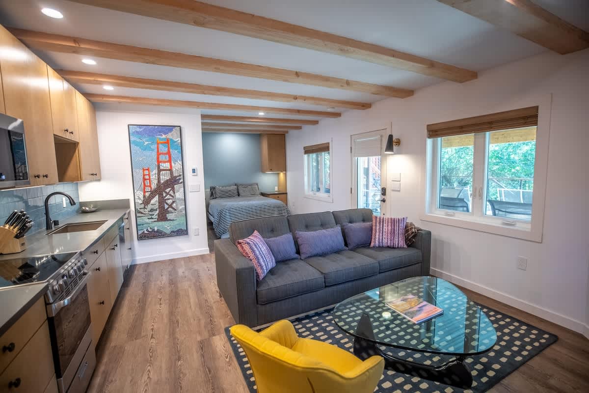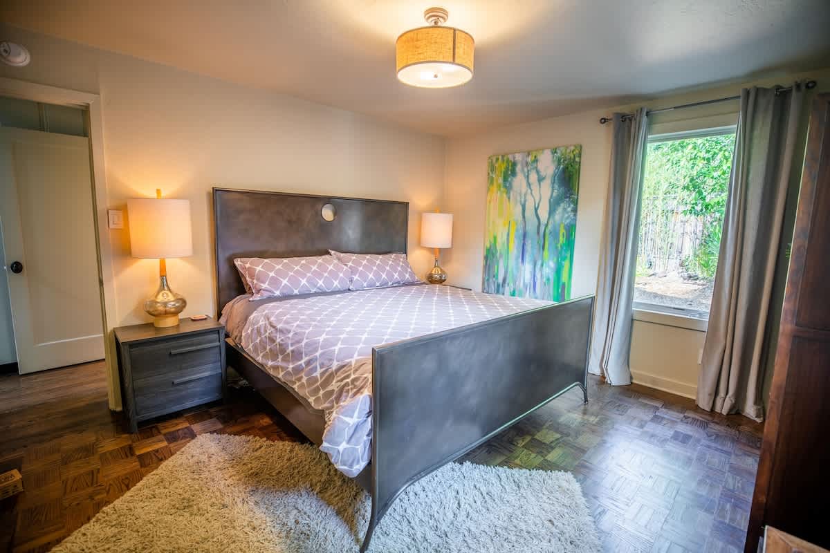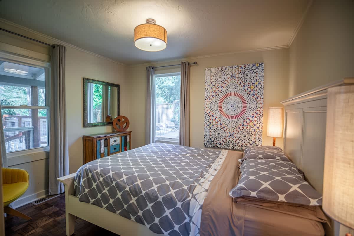 Your reservation includes the entire property: a 2-bedroom main house plus a separate-entry studio suite located downstairs, perfect for added privacy for couples, teens, or extended family. A queen airbed is also available for flexible sleeping arrangements.