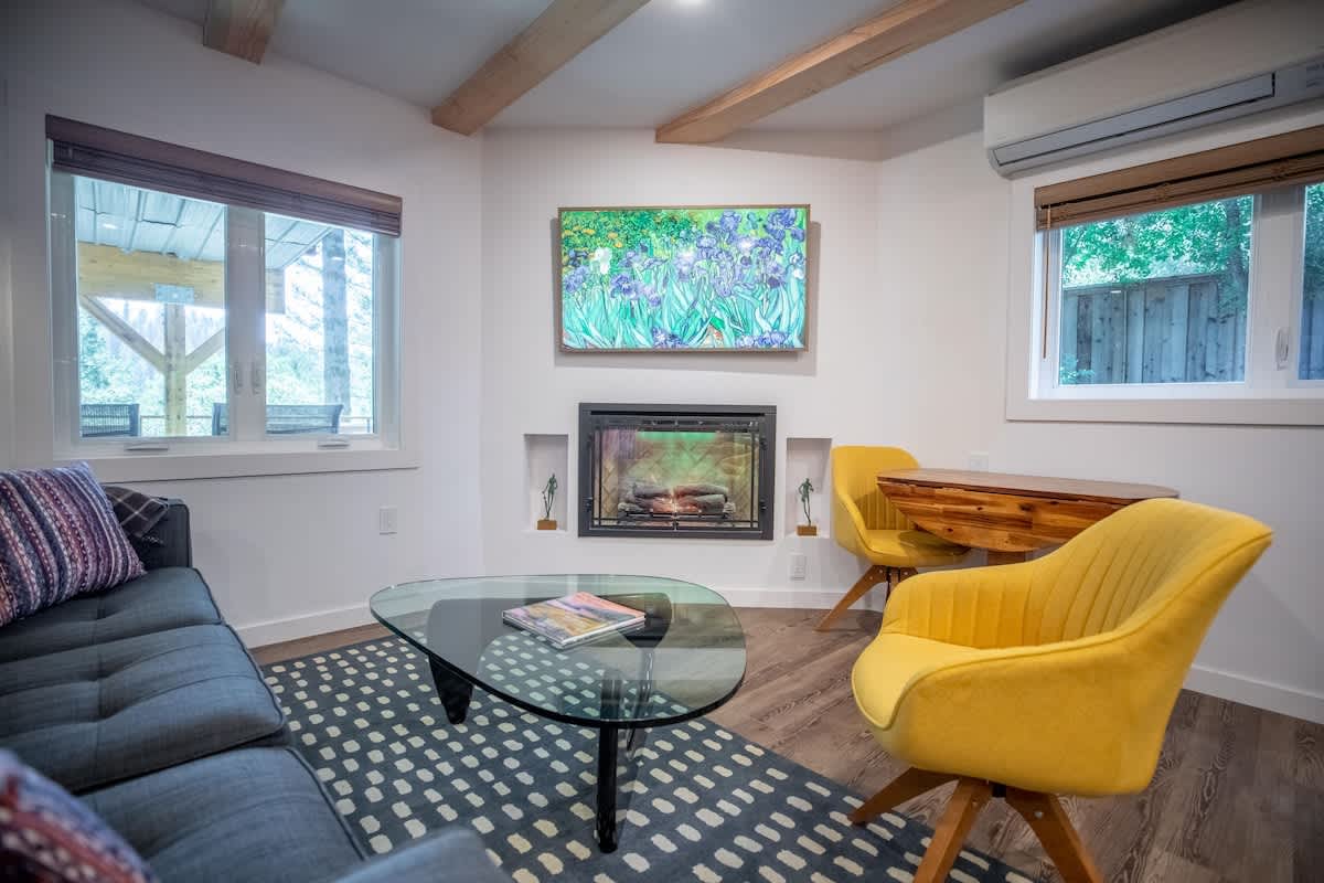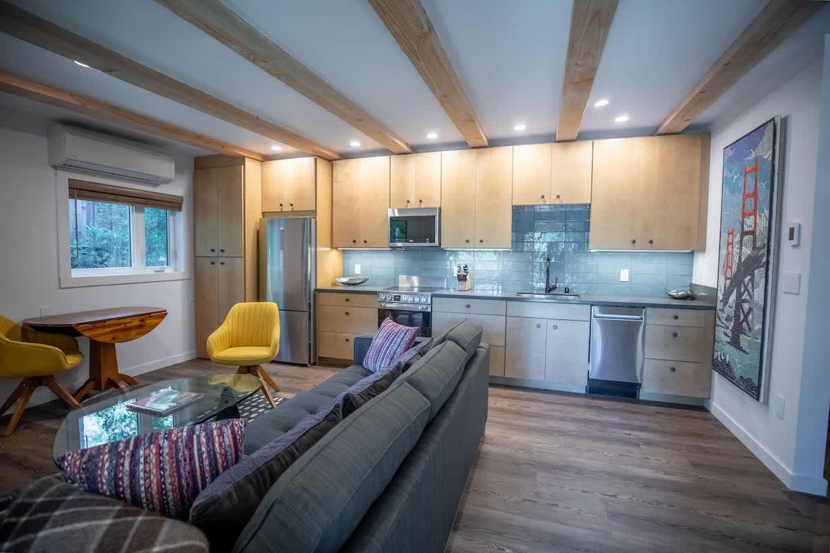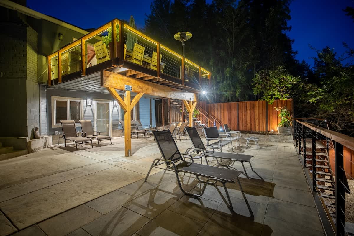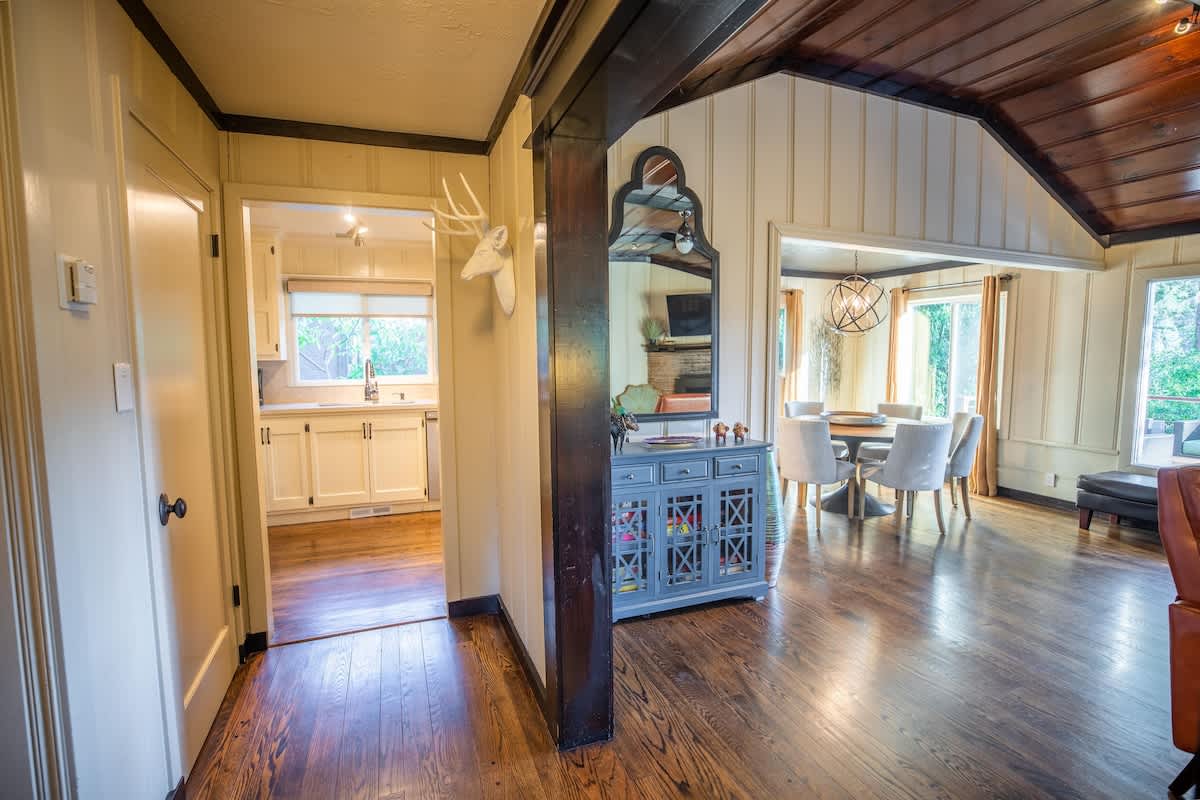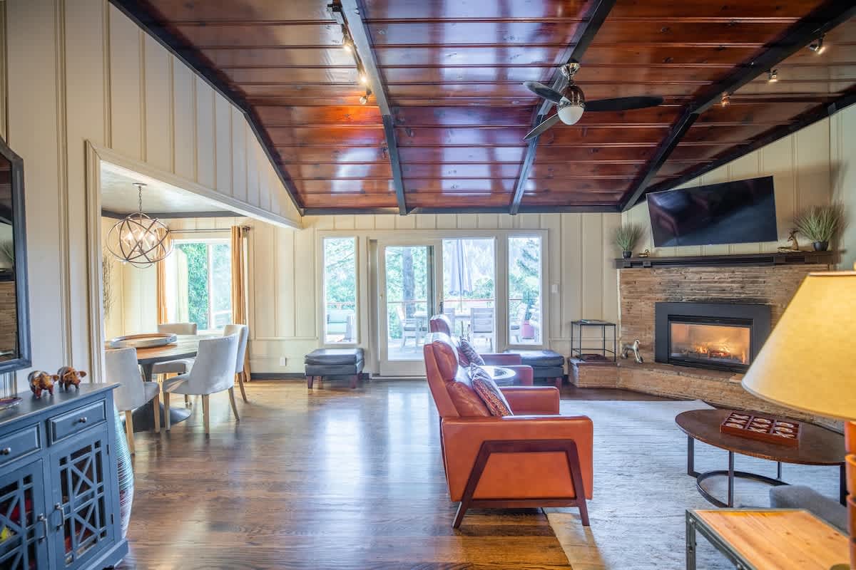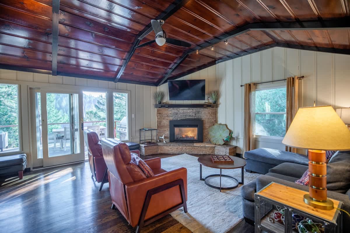 Escape to Valley Vista, a newly renovated hillside retreat nestled among towering redwoods—just 1 mile from the Russian River and downtown Guerneville. Ideal for couples, families, or remote work, this private home offers cozy lodge charm, modern comforts, and peaceful outdoor living.